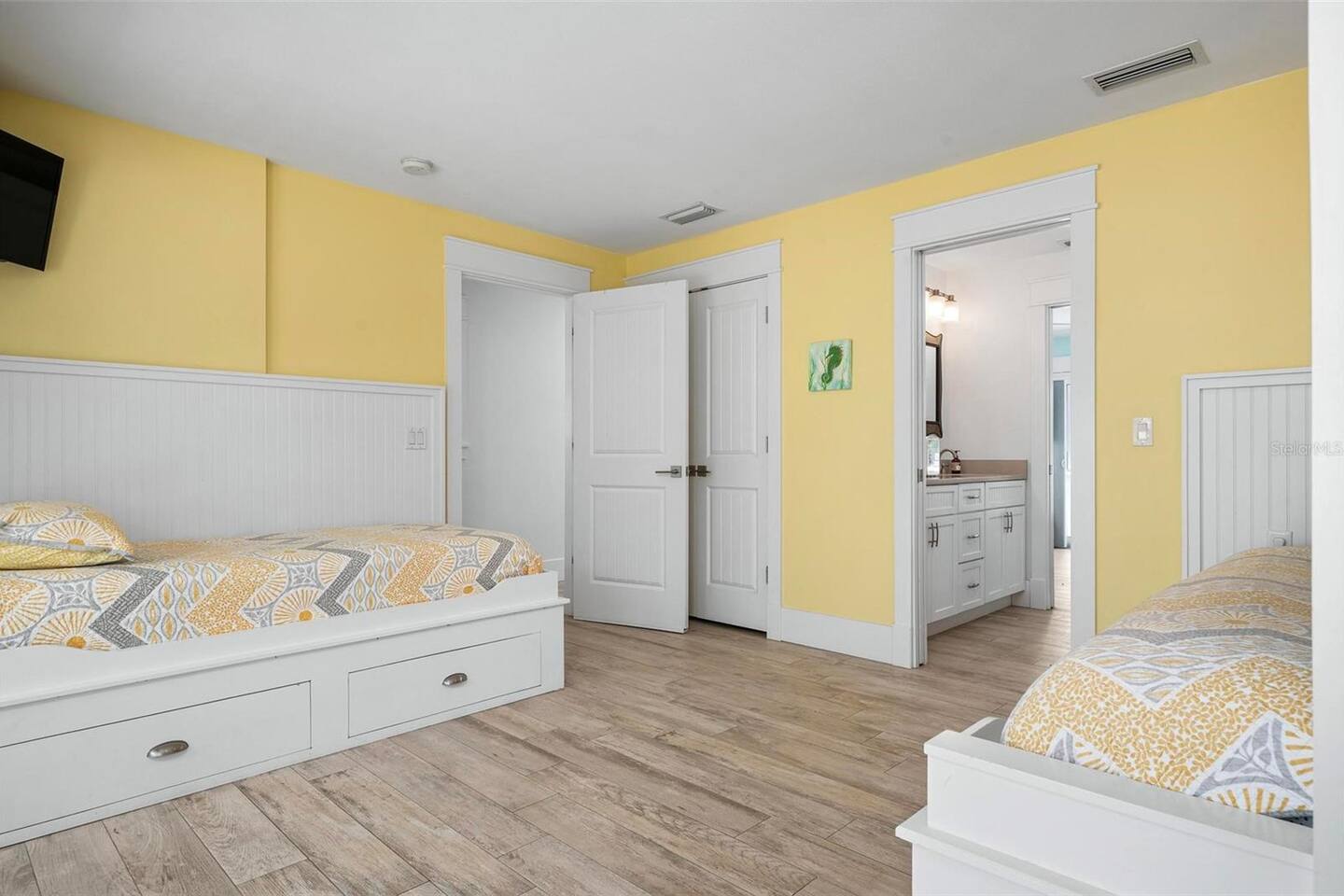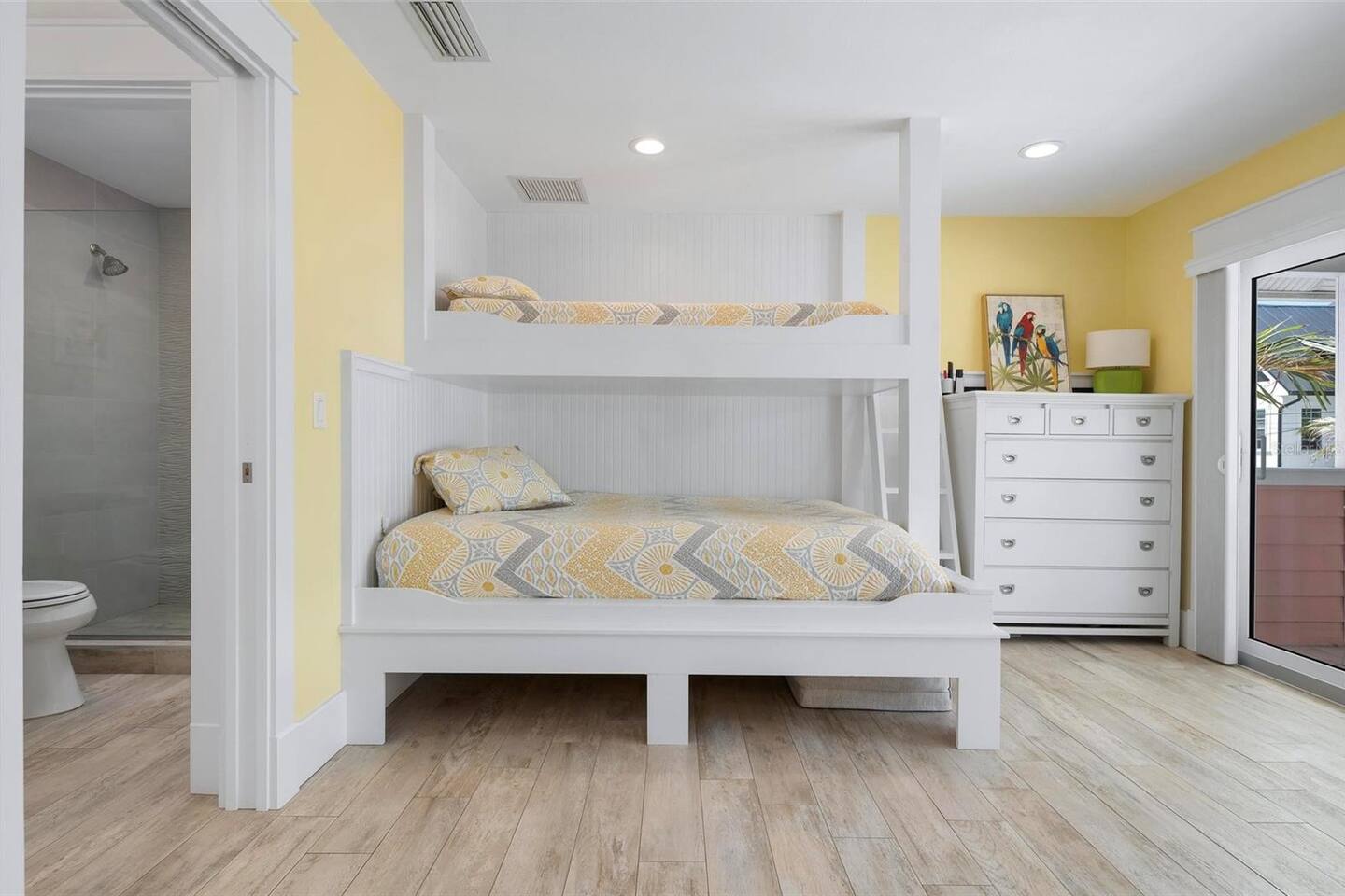 Experience stunning bay and intercoastal views from Casa Rosa, a spectacular four-bedroom, three-bath waterfront vacation rental! Enjoy direct bay access for boating, kayaking, paddleboarding, and fishing, plus a short five-minute walk to Gulf of Mexico beaches. The space Highlights • Waterfront home • 6 Beds • Private dock that can accommodate up to 25ft boat • 5-minute walk to the beach • Kayaks for guest use • Private heated pool • Outdoor bar and dining • Pickleball • Ping Pong table • Washer and dryer The spacious interior is perfect for large groups, featuring a fully equipped kitchen with stainless steel appliances, a breakfast bar, and a dining table. The family area includes a large sectional sofa and a TV. The garage offers a ping pong table and a pickleball net to stay active, and a selfie wall to capture vacation memories. Outside, enjoy paved spaces for entertaining, grilling, and soaking up the sun. There is a sparkling pool, an outdoor dining table, a bar area, an outdoor TV and shower. Casa Rosa offers four beautifully furnished bedrooms with beach decor, nest thermostats, and TVs. The primary bedroom features a king bed, patio pool access, and an ensuite bathroom with a double vanity and walk-in shower. The second bedroom also has a king bed and an ensuite bathroom with a shower/tub combo. The third and fourth bedrooms both have balcony access and share a Jack and Jill bathroom with a walk-in shower. Secure your stay at Casa Rosa today! Other things to note: This property has an active Ring doorbell at the main entrance and one in the back facing the dock. Boat/Dock Info – Max size: 25ft. Low Tide Depth: 3ft. Boat and Jet Ski lift for owner use only. This property does not allow pets of any kind. 4 cars maximum are able to park at this home. We ask our guests to please plan accordingly and coordinate with your group. There is no overnight parking available for additional vehicles. Please Remember: "You are vacationing in a residential area. Please be a good neighbor by keeping the noise to a respectful level during the day and night. Excessive and unreasonable noise can deprive neighbors of the peaceful enjoyment of their private property." *Exceeding the noise ordinance could result in disciplinary actions including fines and/or termination of your rental agreement without refund. Remember there were 2 hurricanes that destroyed the area so homes and businesses are rebuilding.
